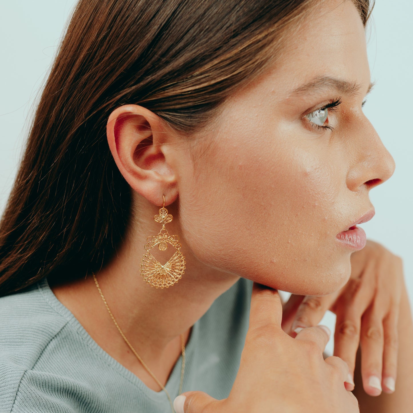 Earrings Arrecadas Filigree in Gold Plated Silver