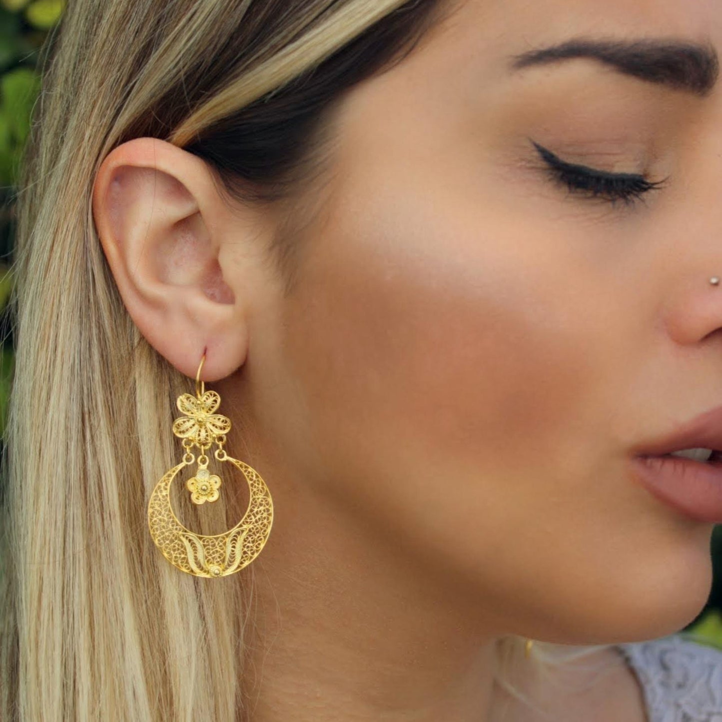 Gold plated silver 925‰ earrings with 4,0cm and 6,4gr. Handmade in Portugal.