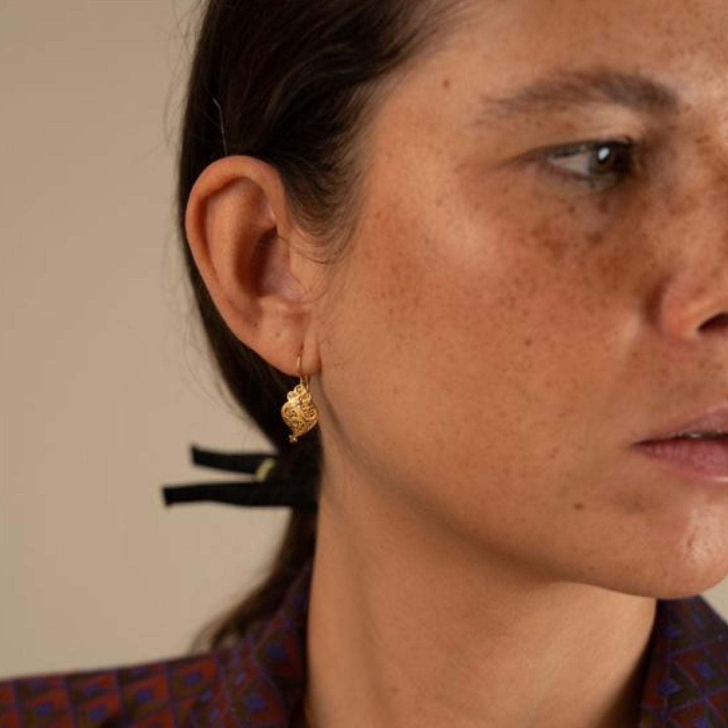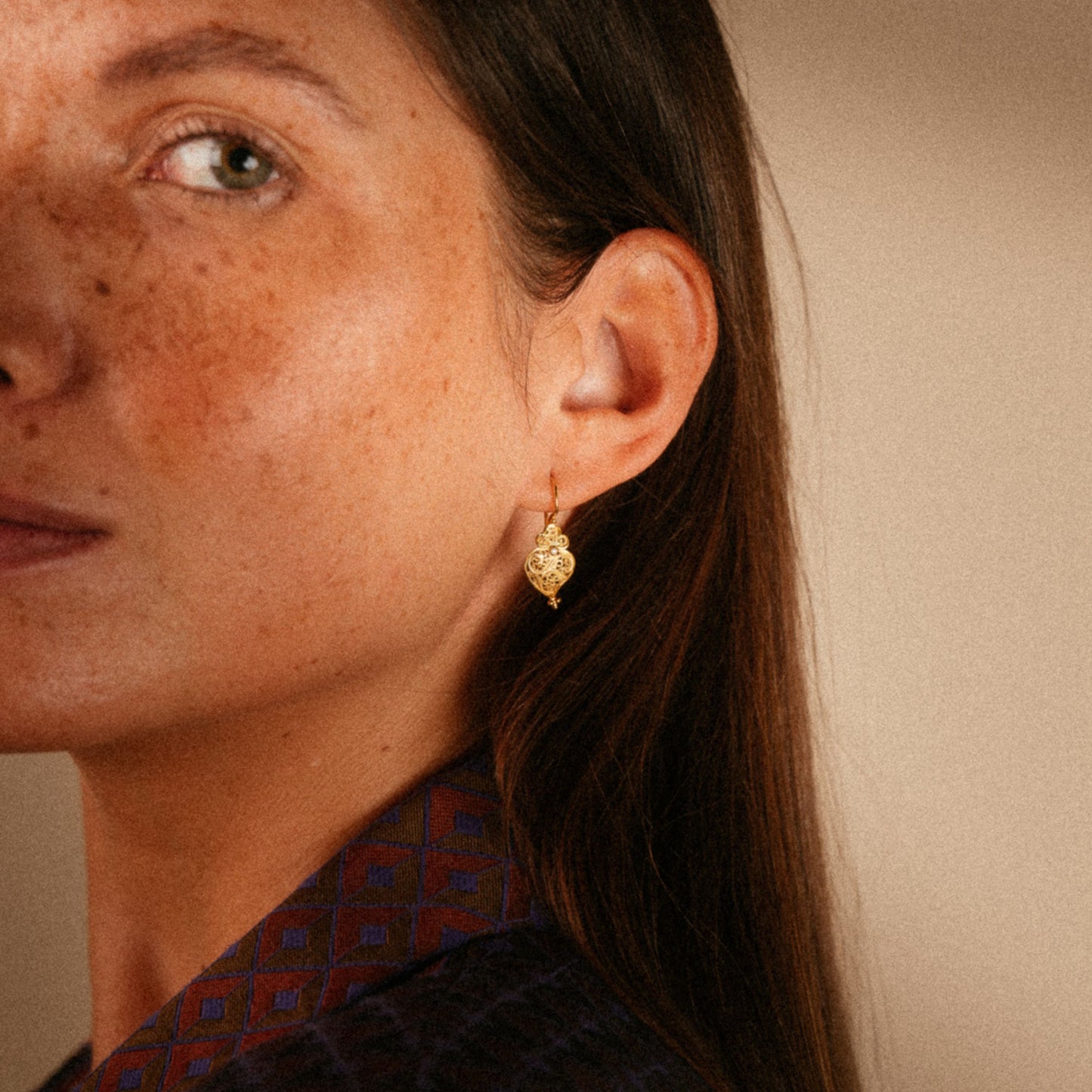 Gold Heart of Viana earrings with diamonds, part of the Portuguese Gold (19.2Kt Gold) Collection.