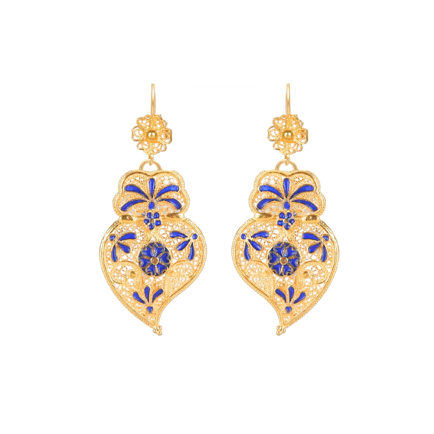 Earrings Heart of Viana Royal Blue in Gold Plated Silver, part of the Azulejo Collection.