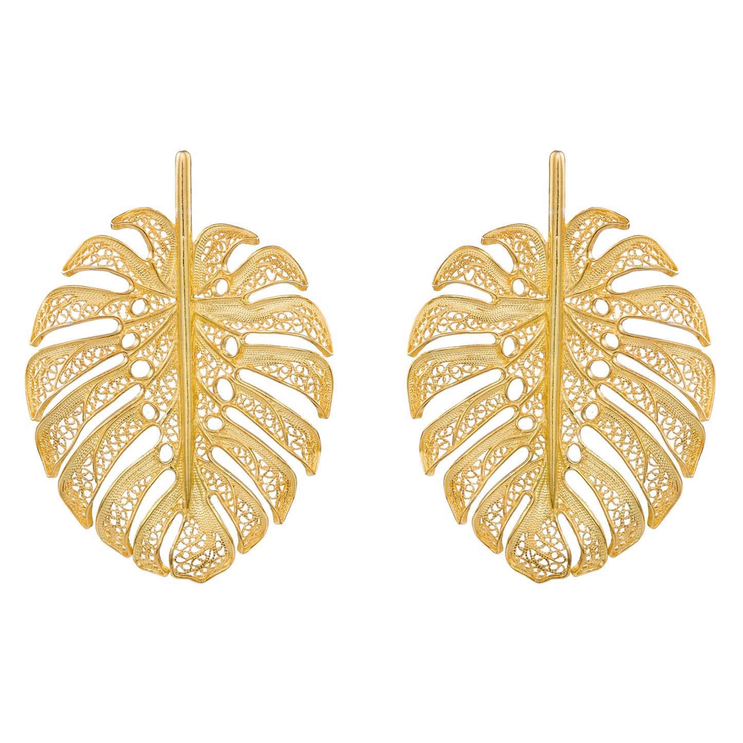 Earrings Monstera XL in Gold Plated Silver