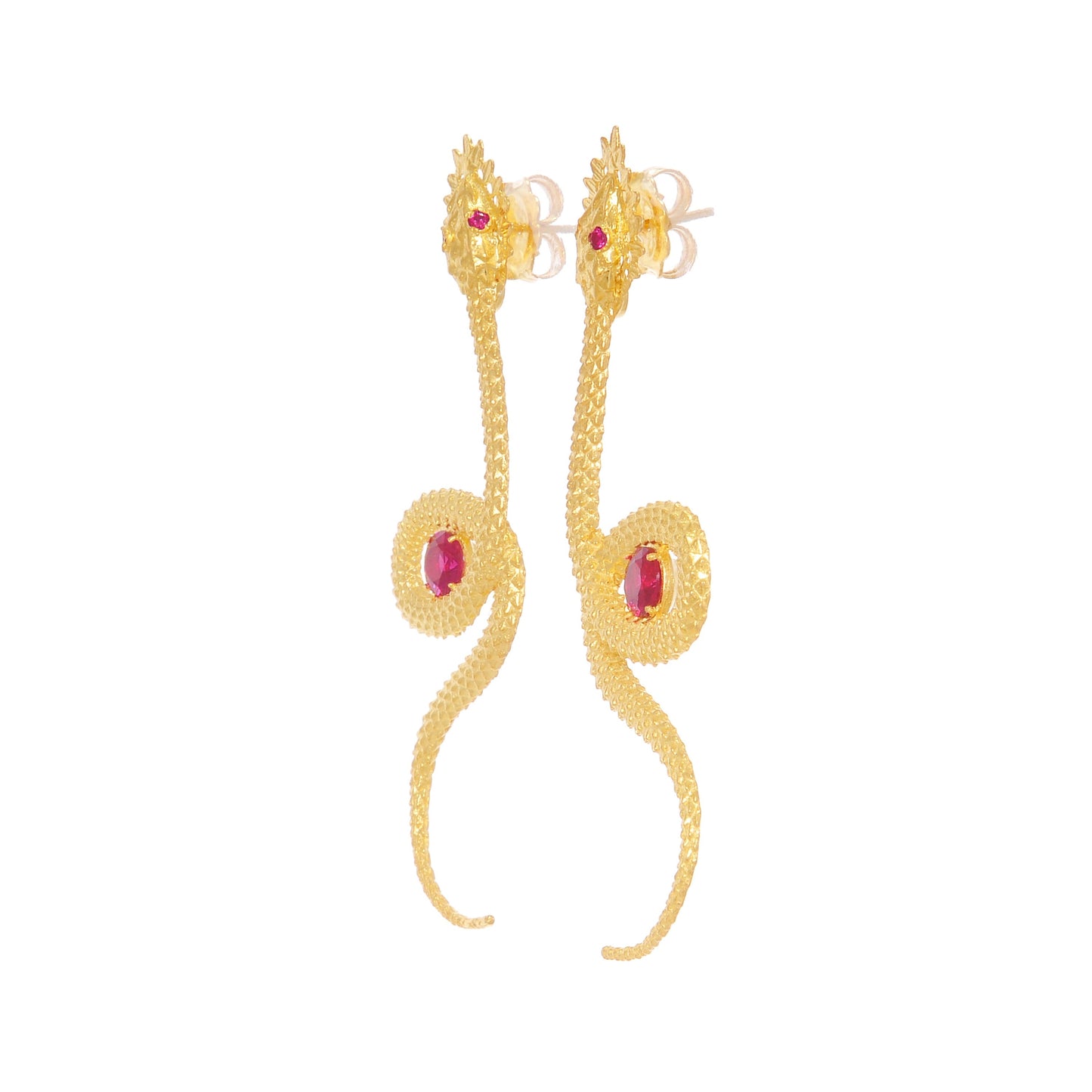Earrings Snake Red in Gold Plated SilverMaterial Gold Plated Silver