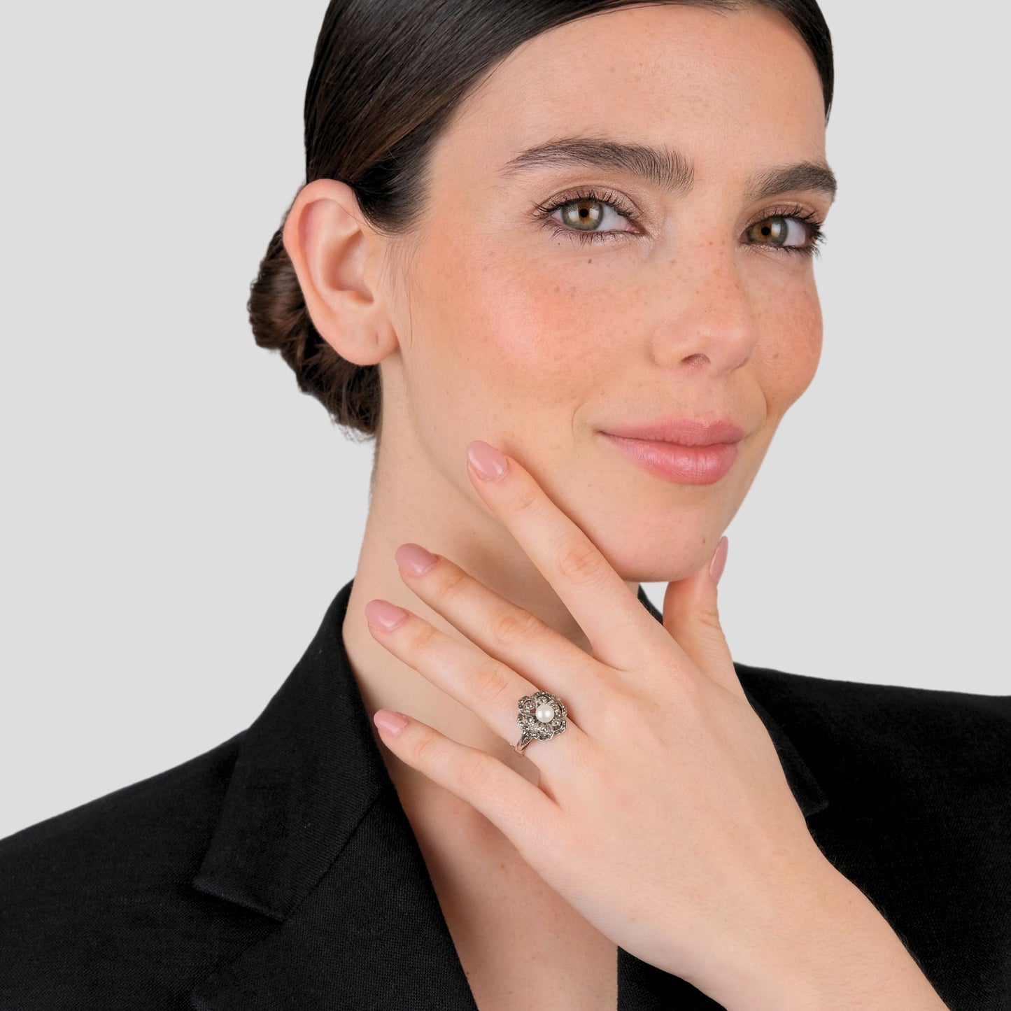 Ring Flower Marcasites in Silver with Pearl, part of the Marcasites Collection.