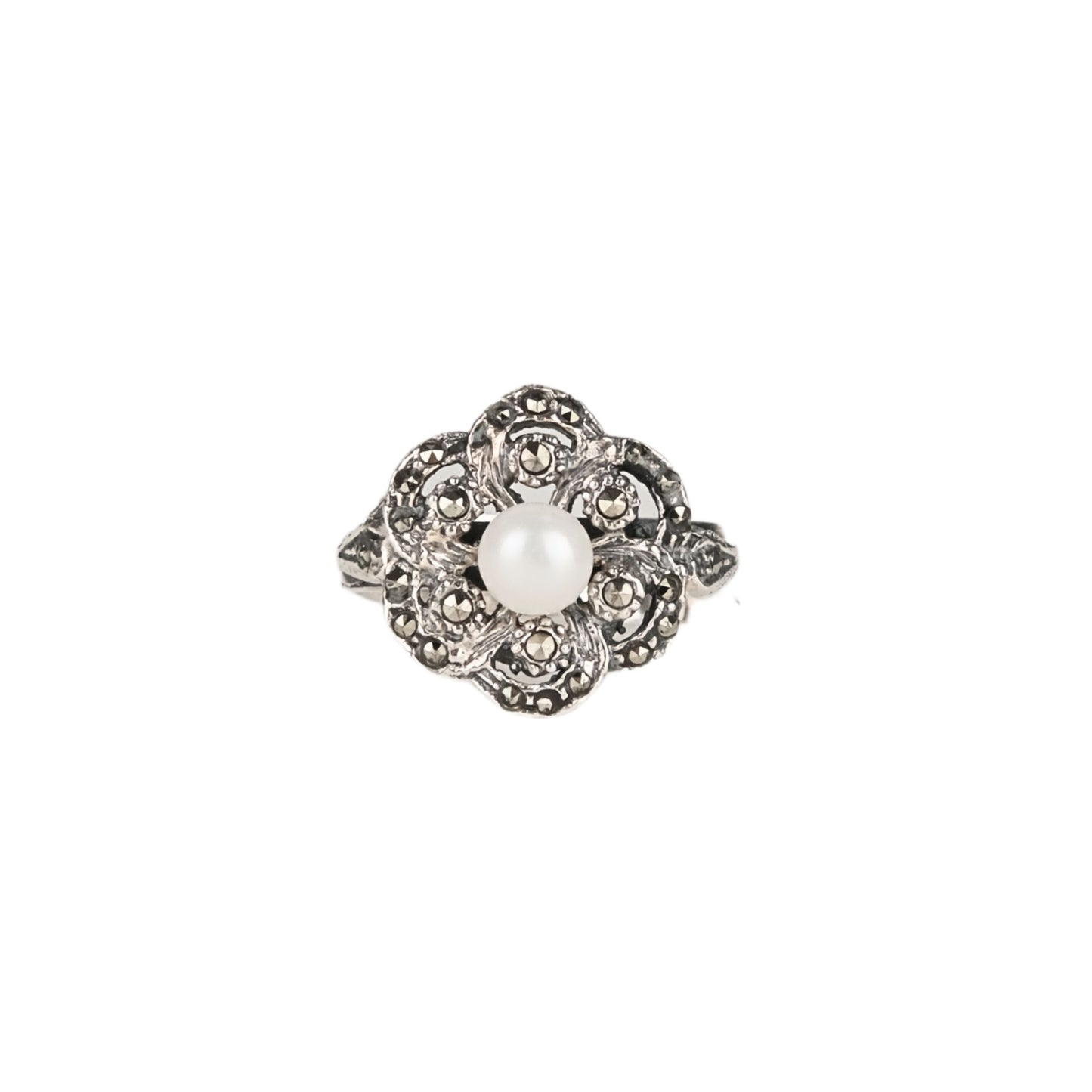 Ring Flower Marcasites in Silver with Pearl