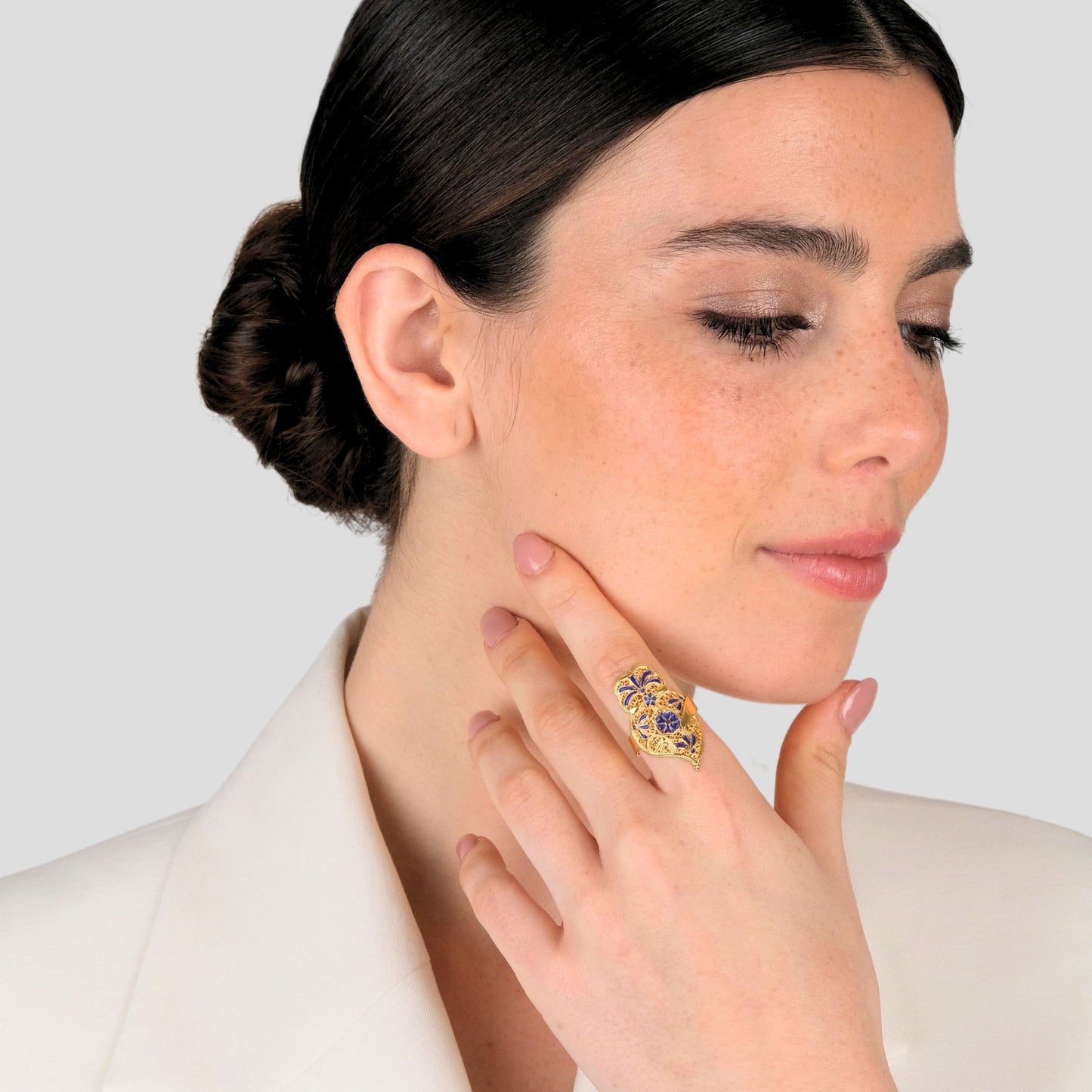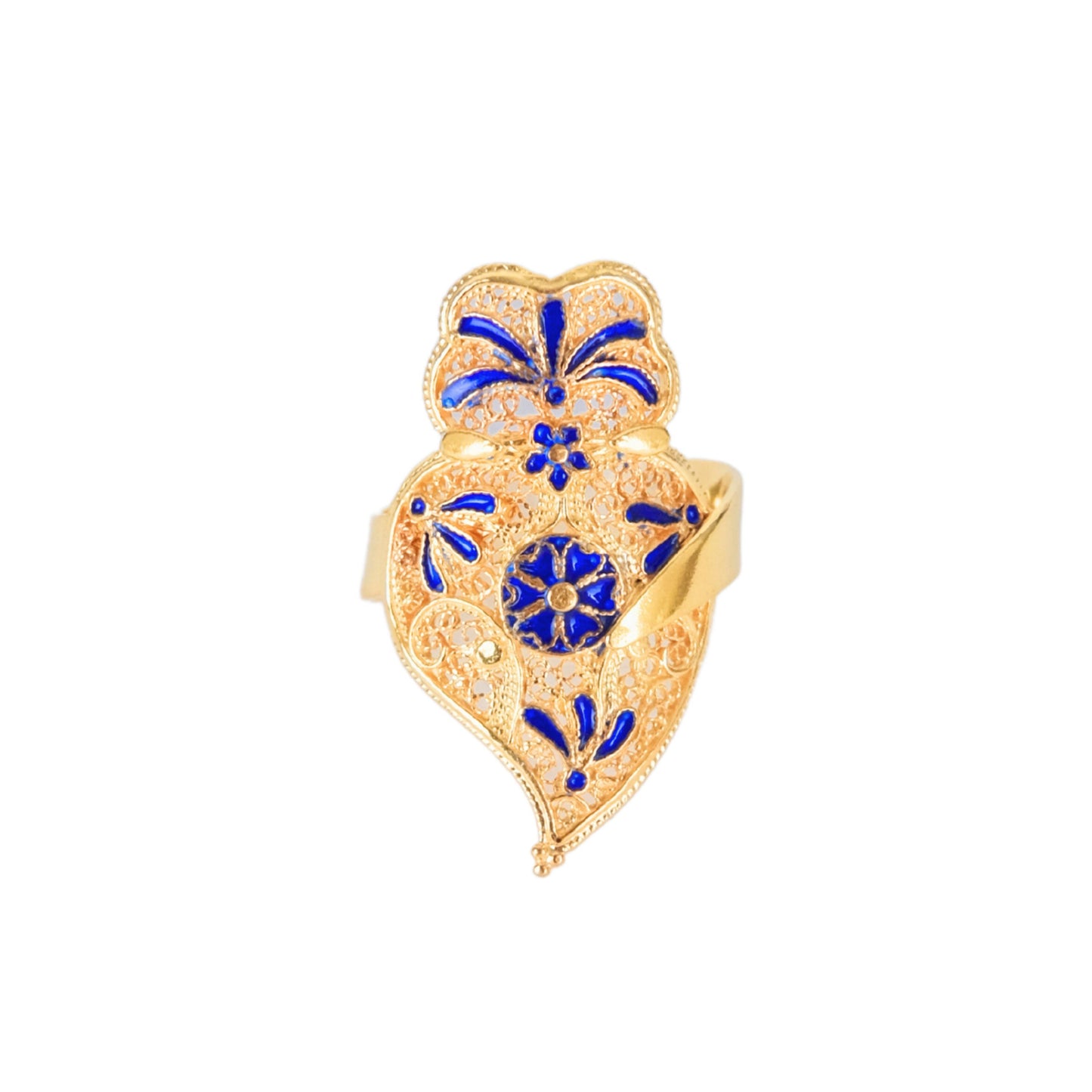 Ring Heart of Viana Royal Blue in Gold Plated Silver, part of the Azulejo Collection.