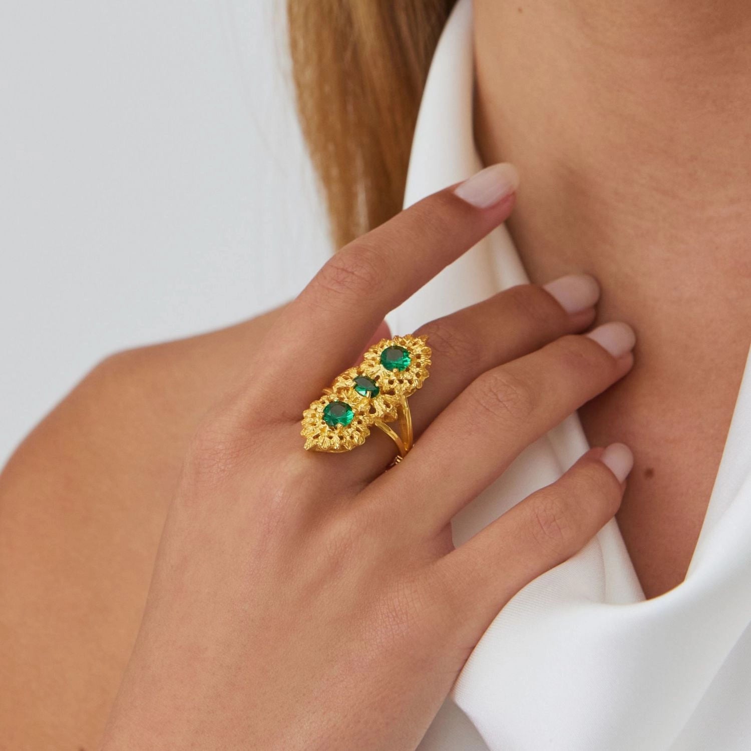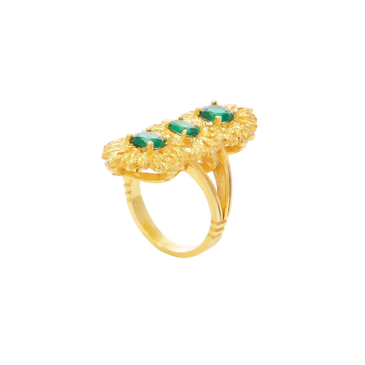 Ring Queen Green Triple in Gold Plated SilverMaterial Gold Plated Silver