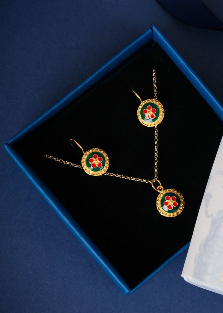 Necklace Cherry Blossom with Emerald in 19.2Kt Gold