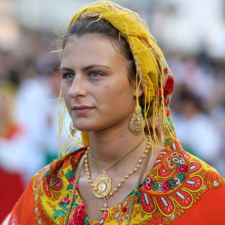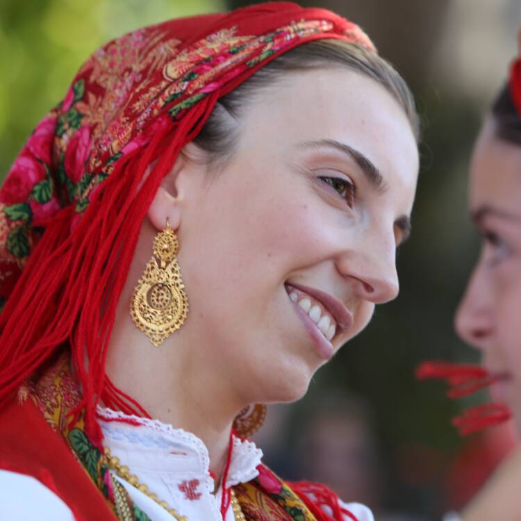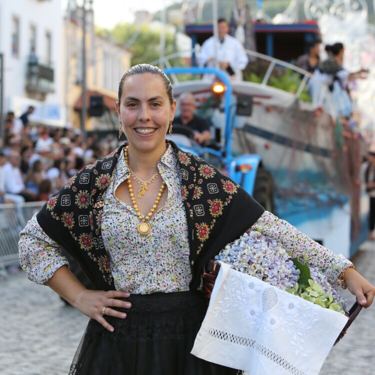 Among Viana do Castelo's costumes, the mordoma’s costume is, without a doubt, the most iconic and impressive. This costume is worn by mordomas during the Lady of Agony festivals and other important celebrations and is characterized by its wealth and ostentation. The Viana do Castelo mordoma’s costume includes a velvet or wool skirt, a vest embroidered with intricate patterns, a linen shirt with delicate embroidery, and, the most eye-catching element, the gold pieces that adorn the neck, chest, and hands of mordoma’s.