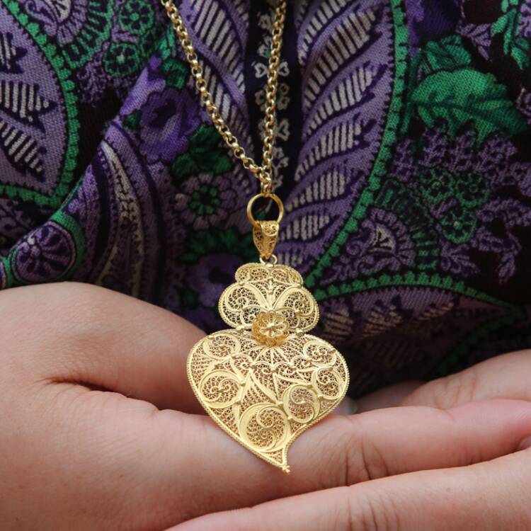 Viana's mordomas are the guardians of traditions, and their attire is a symbol of the region's cultural heritage and wealth. The gold pieces worn by mordomas are often inherited from previous generations and are passed down from mother to daughter as a family treasure. If you want to feel the cultural richness and tradition of mordoma’s attire , Portugal Jewels offers a stunning selection of jewelry that perfectly complements this outfit and effortlessly adapts to cutting-edge trends, such as the Heart of Viana Earrings and Necklace in 19.2kt Gold.