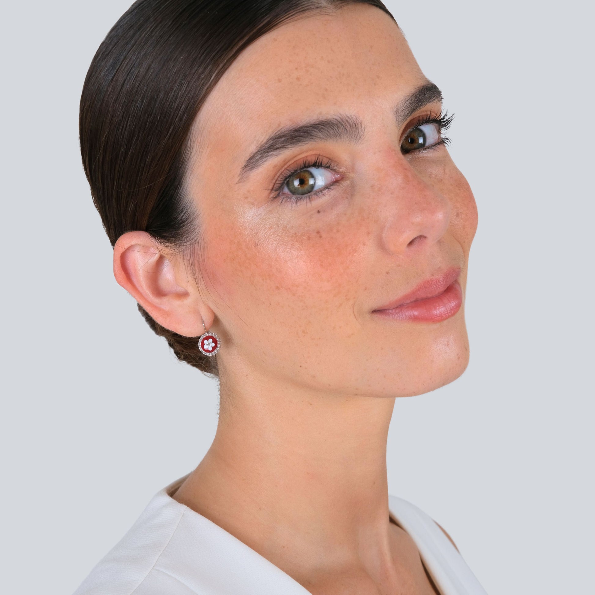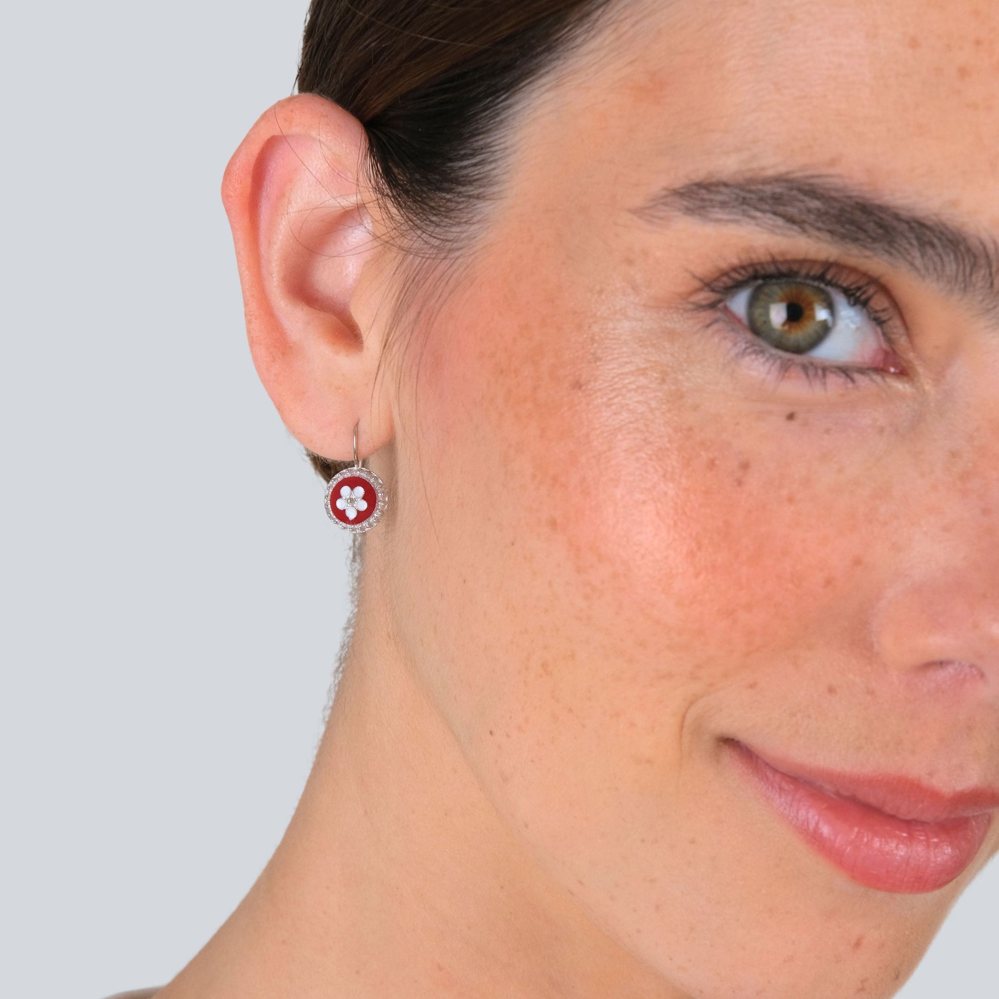 Silver 925‰ earrings with with red enamel. Earring diameter 1,2cm and total length 2cm. 1,6gr. Handmade in Portugal.