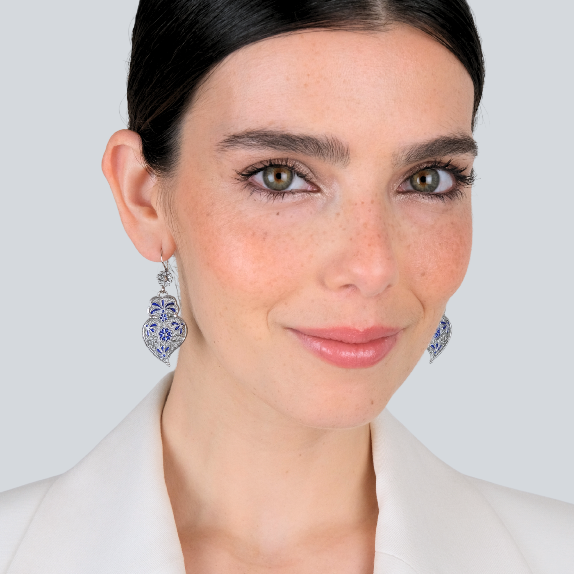 Pendientes Corazón de Viana Azul Real de Plata, parte de la Colección Azulejo.