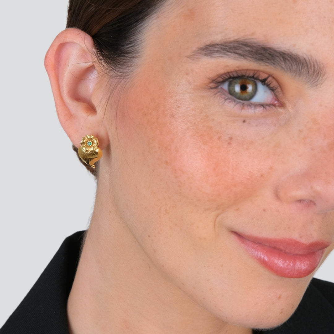 Pendientes Corazón Independente con Esmeralda en Oro de 19,2Kt