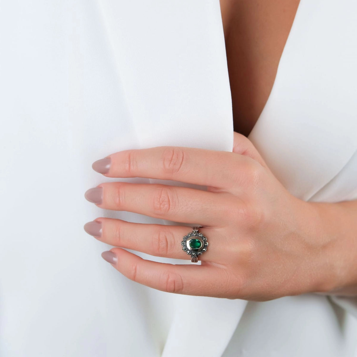 Un ejemplo perfecto es el Anillo Verde con Marcacitas, una pieza sofisticada, ideal para una tía de gustos más refinados.