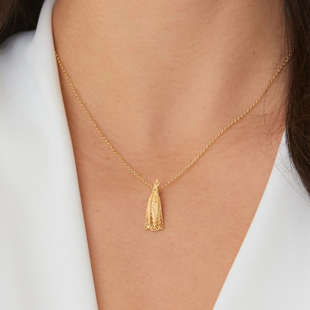 Se puede considerar ofrecer un Collier Notre-Dame de Fátima en Argent Plaqué Or, una pieza delicada y simbólica que sin duda emocionará.