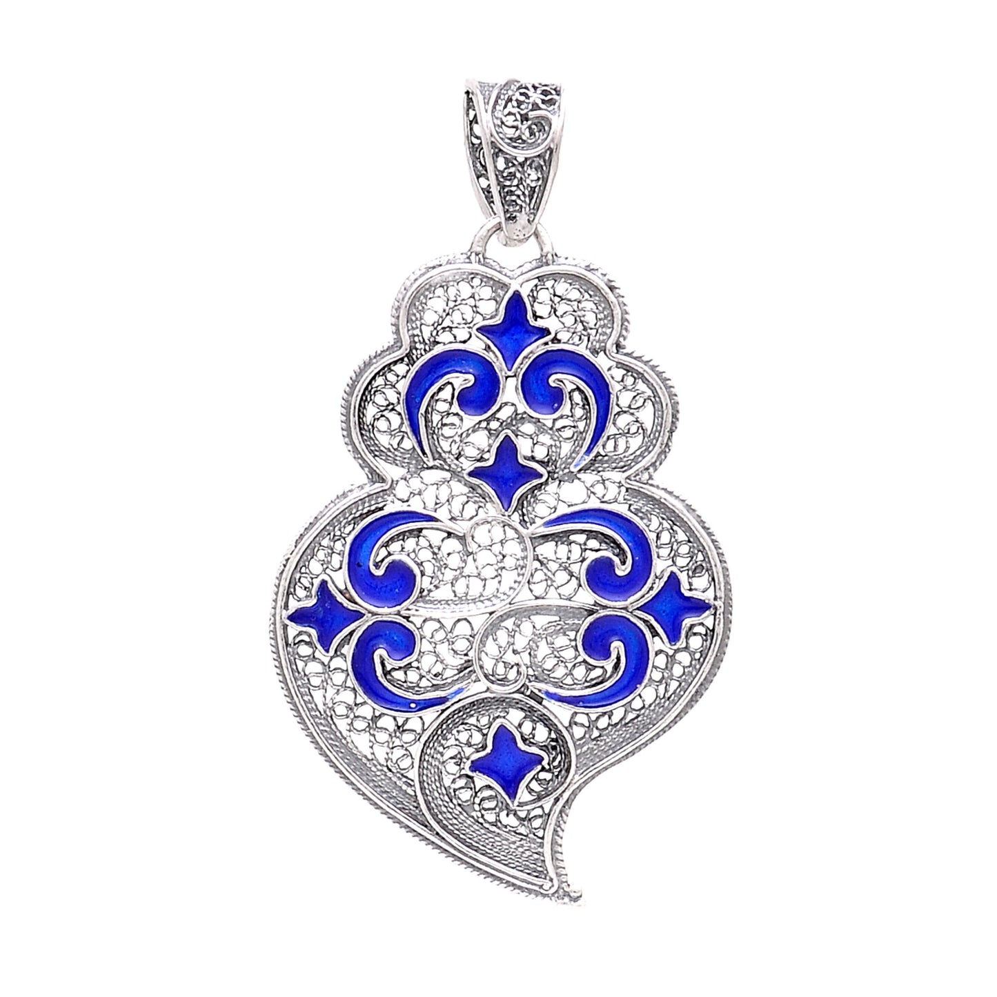 Collier Coeur de Viana en argent en filigrane, faisant partie de la collection Azulejo.