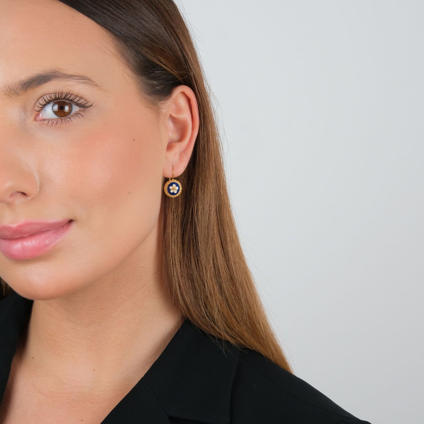 Boucles d'oreilles en or 9Kt avec émail, 1,2 cm et 1.6gr. Fabriqué à la main au Portugal.
