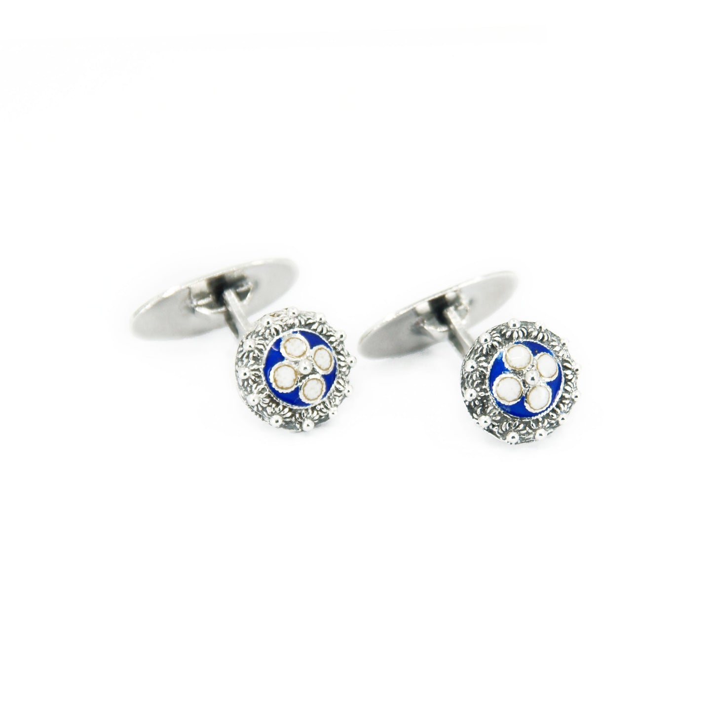 Boutons de manchette en argent 925‰ et émail, 1,2cm et 6,4gr. Fabriqué à la main au Portugal.