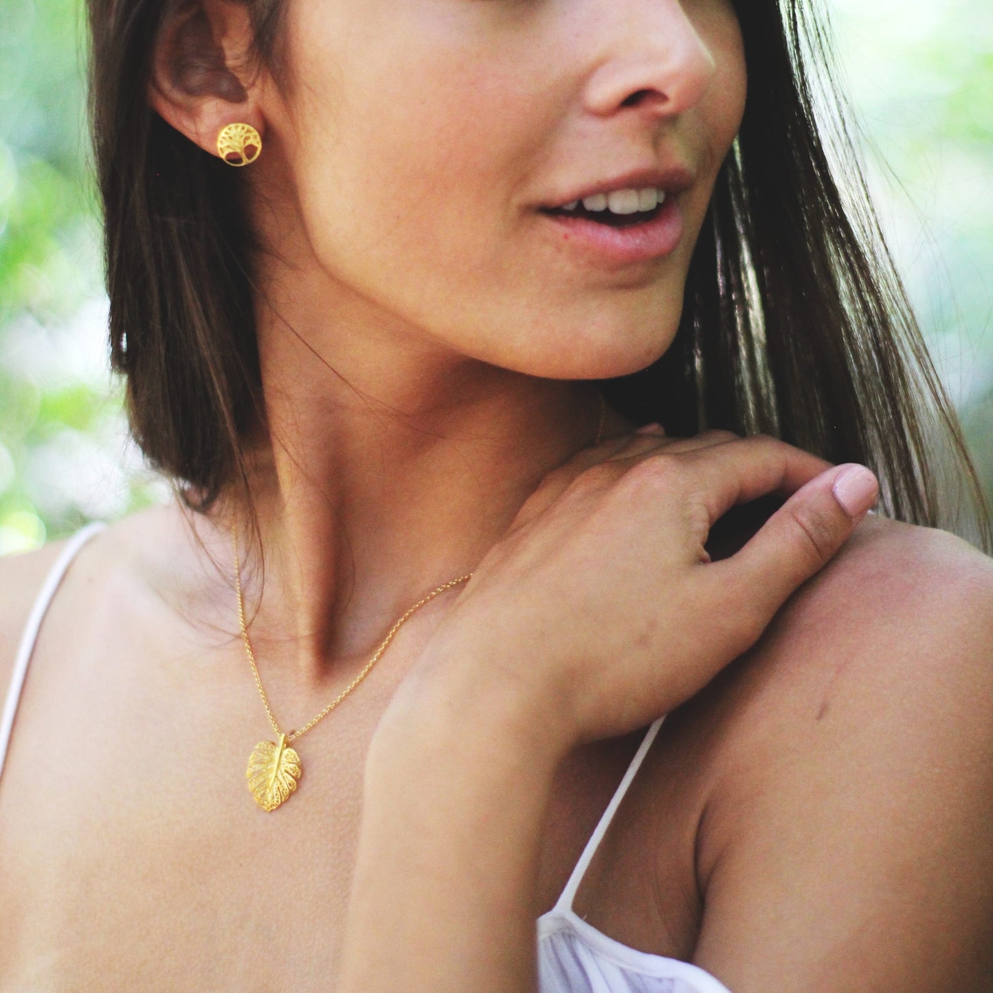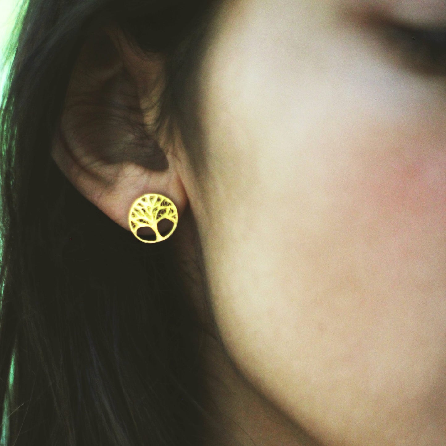 Boucles d'Oreilles Arbre de Vie en Argent Plaqué Or