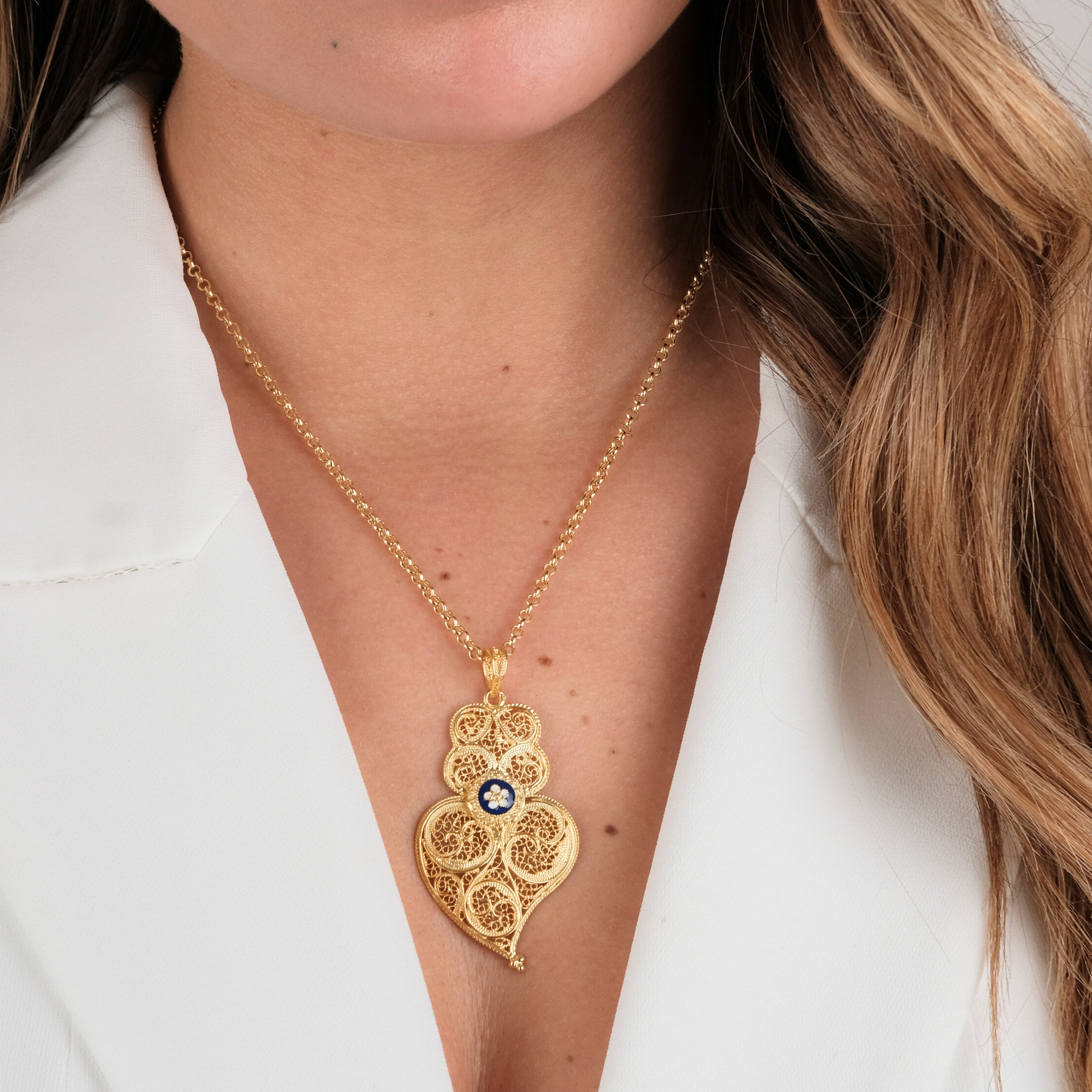 Collier en argent plaqué or 925‰ de 45cm et 8gr. Coeur de Viana de 5cm. Fabriqué à la main au Portugal.