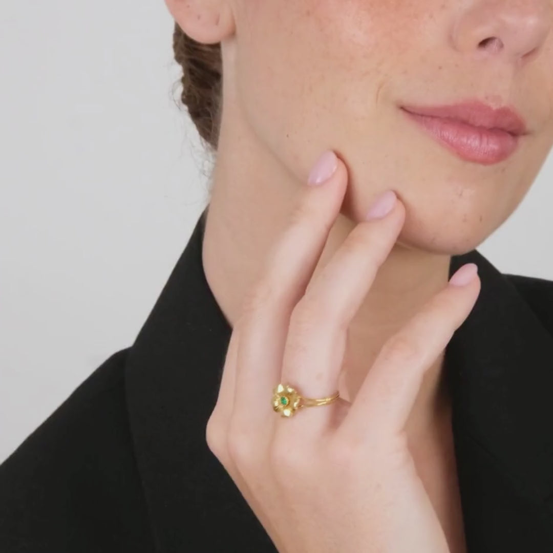 Anel Flor de Cerejeira com Esmeralda em Ouro 19,2Kt