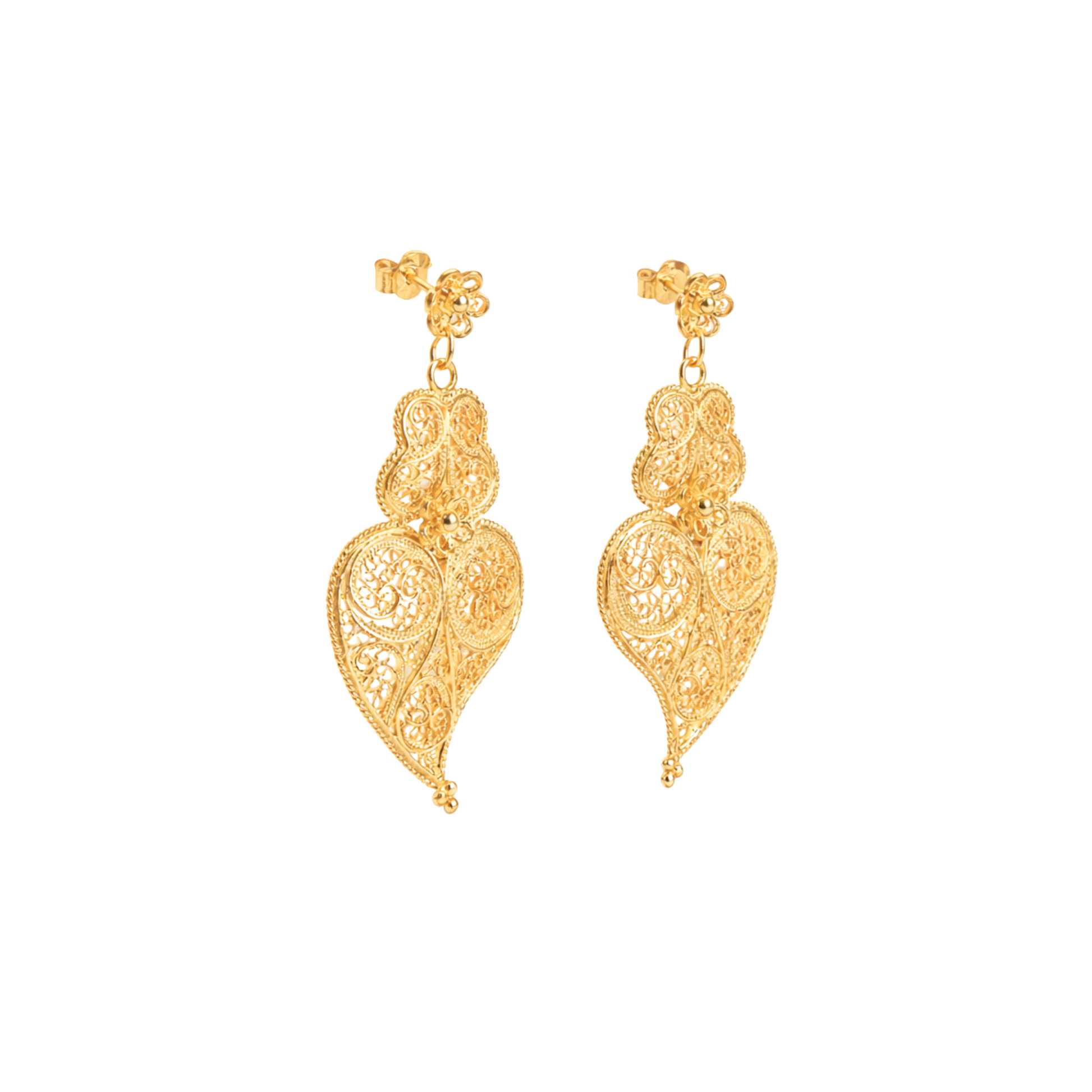 Brincos Coração de Viana Ciclo em Prata Dourada