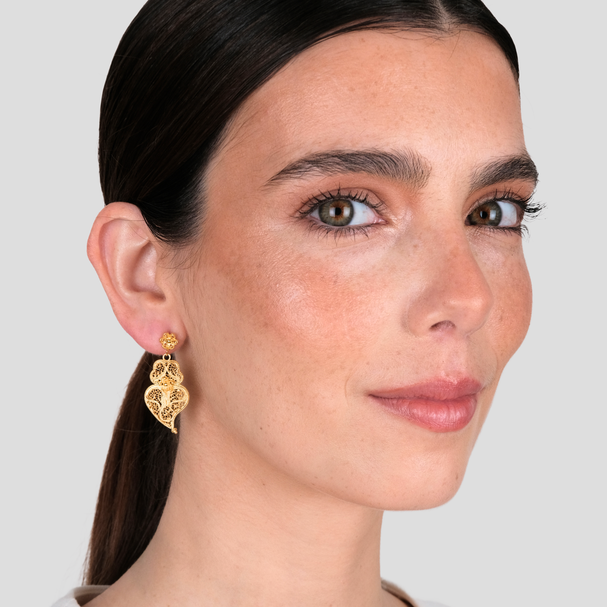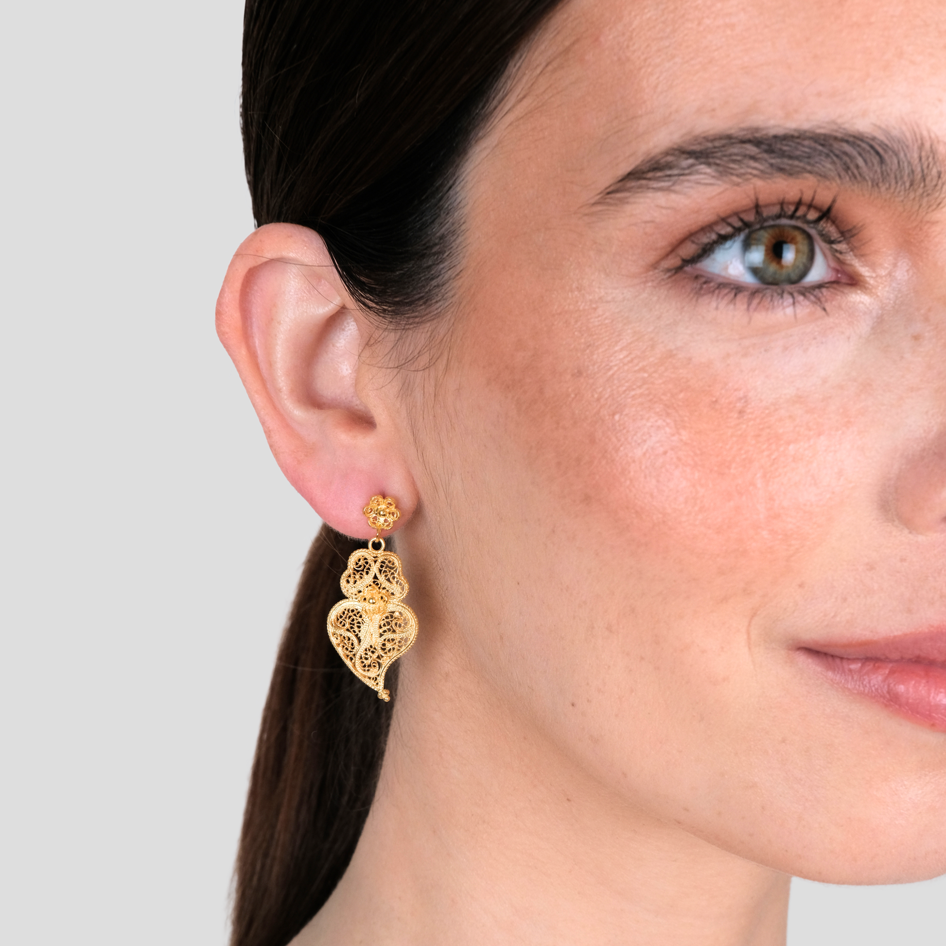 Brincos Coração de Viana Ciclo em prata dourada, da Coleção Ciclo.