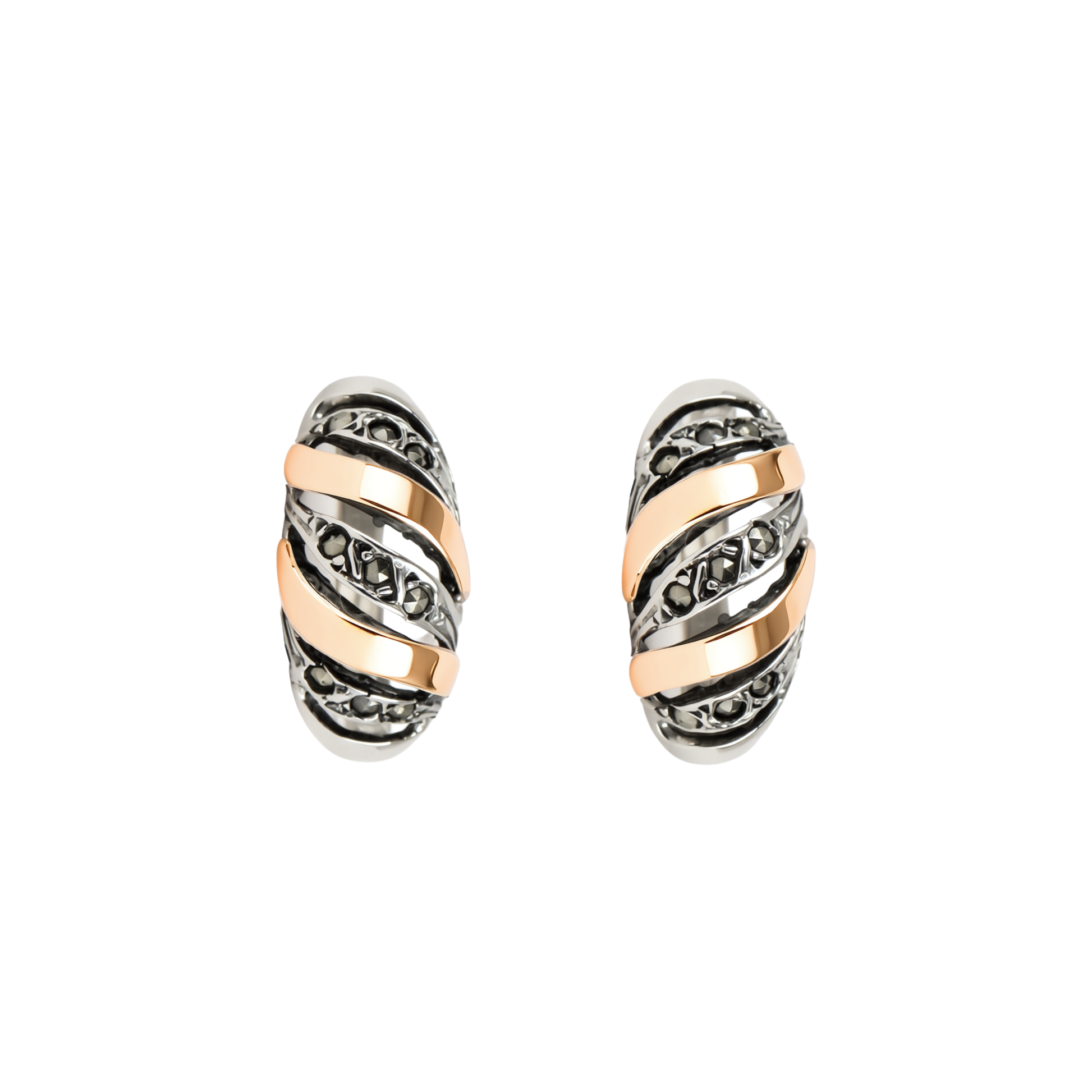 Brincos Croissant com marcassites em prata e ouro da Coleção joias de Marcassites.