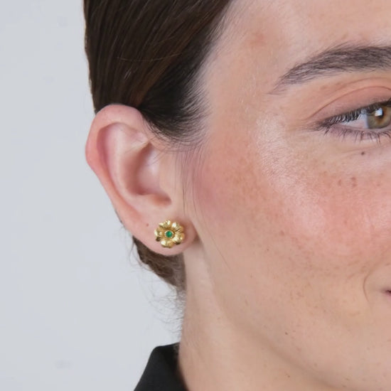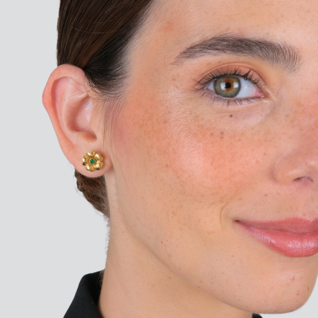 Brincos Flor de Cerejeira com Esmeralda em Ouro 19,2Kt