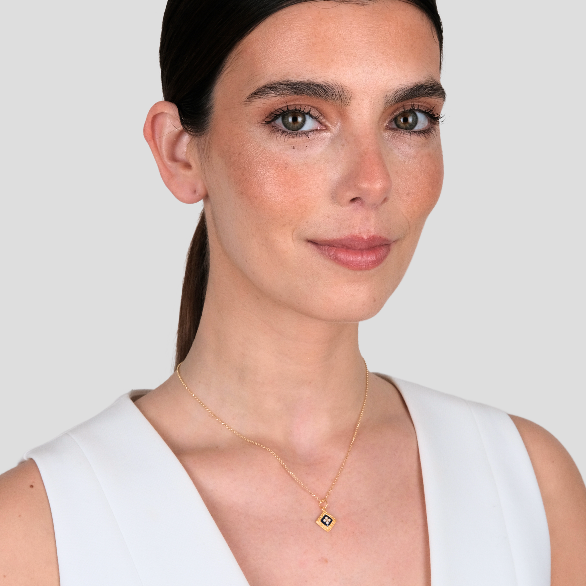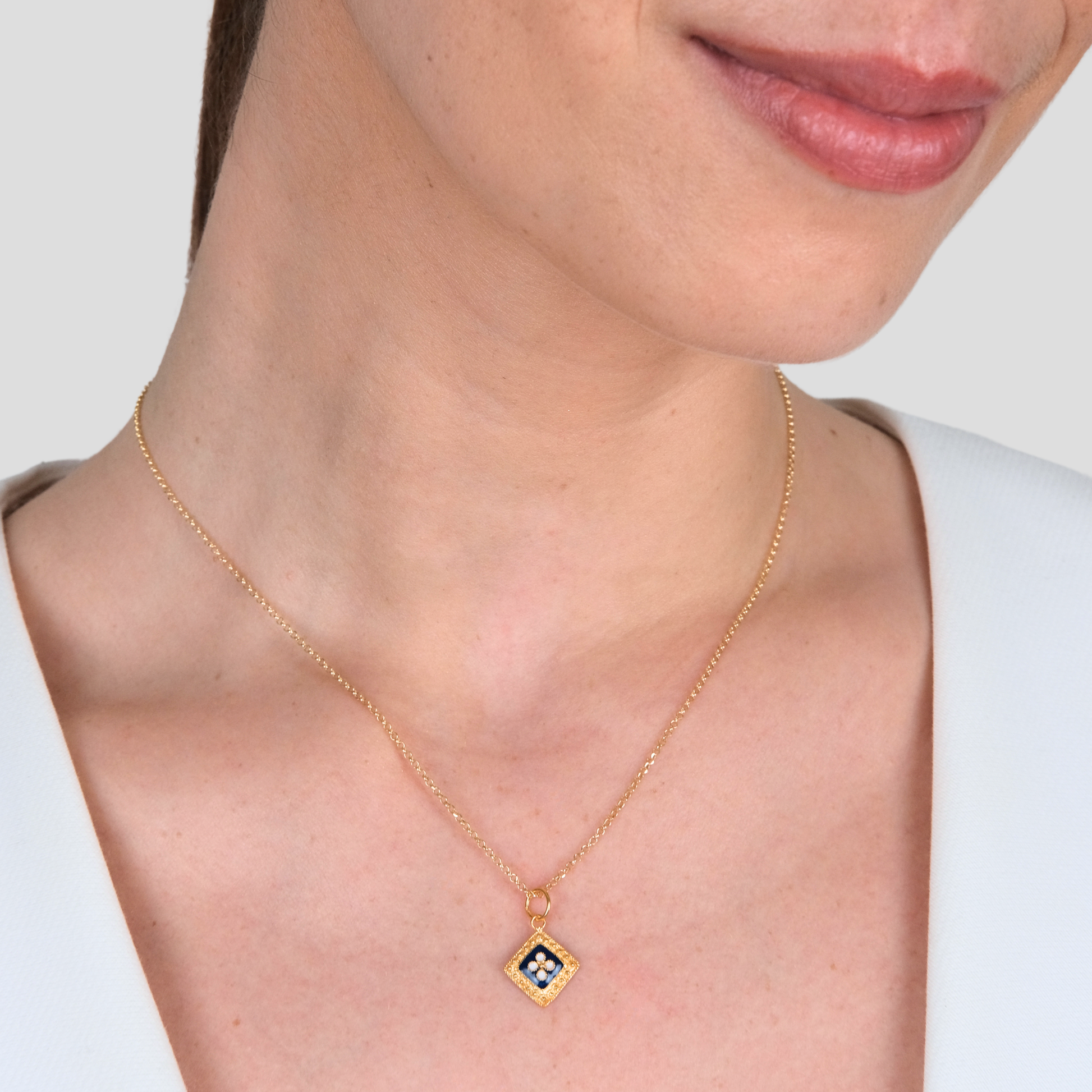 Colar em prata dourada 925‰ com 45cm e 2,0gr. Medalha Losango com esmalte e 1,2cm. Feito em Portugal.