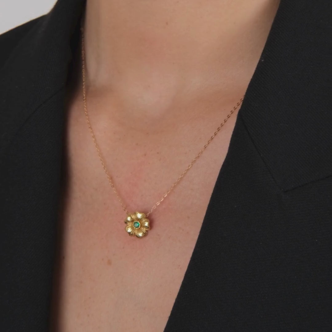 Colar Flor de Cerejeira com Esmeralda em Ouro 19,2Kt