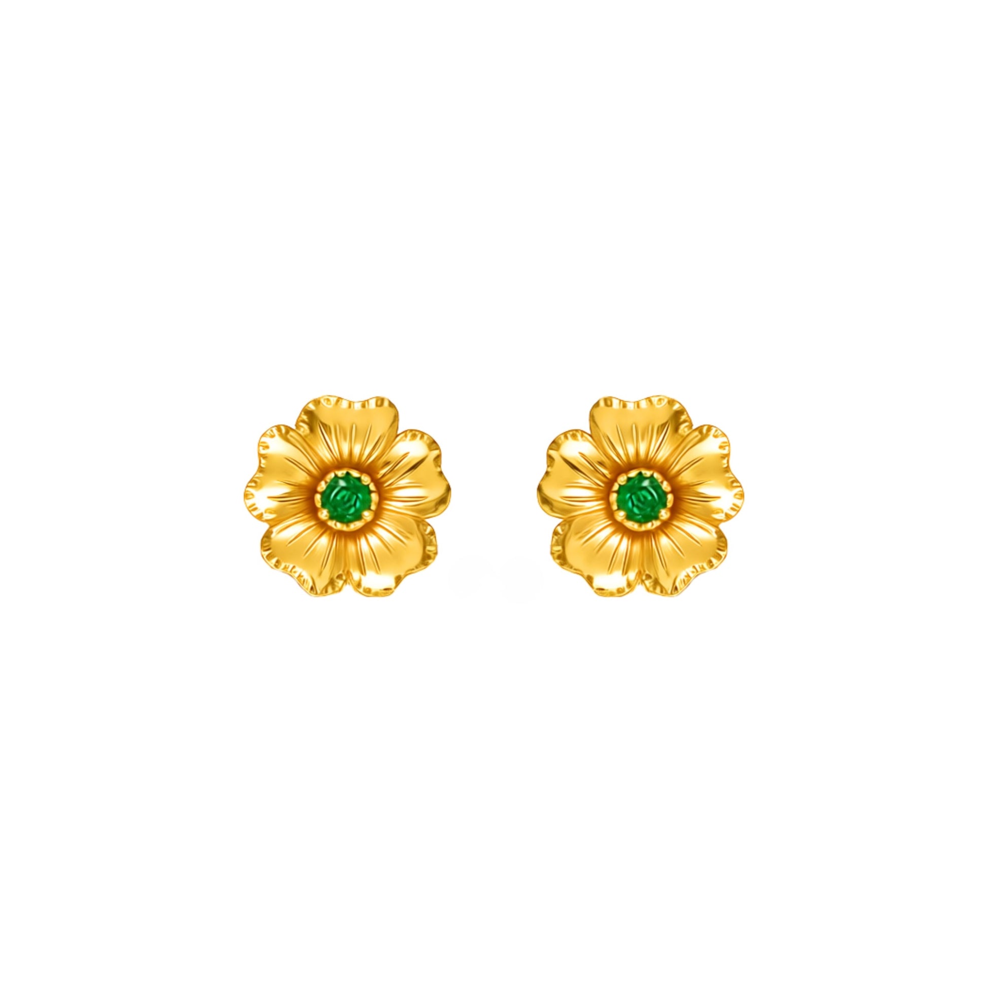 Brincos Flor de Cerejeira com Esmeralda em Ouro 19,2Kt
